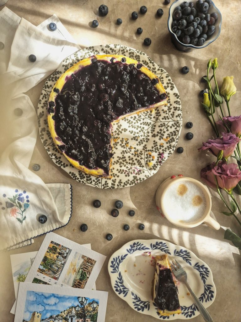 Imi place ca vara sa pregatesc cheesecake-uri de toate felurile si cu toate aromele. De data aceasta am pregatit un cheesecake cu sos de afine. S-a dorit o combinatie intre cheesecake-ul clasic si San Sebastian cheesecake (Burnt basque ).