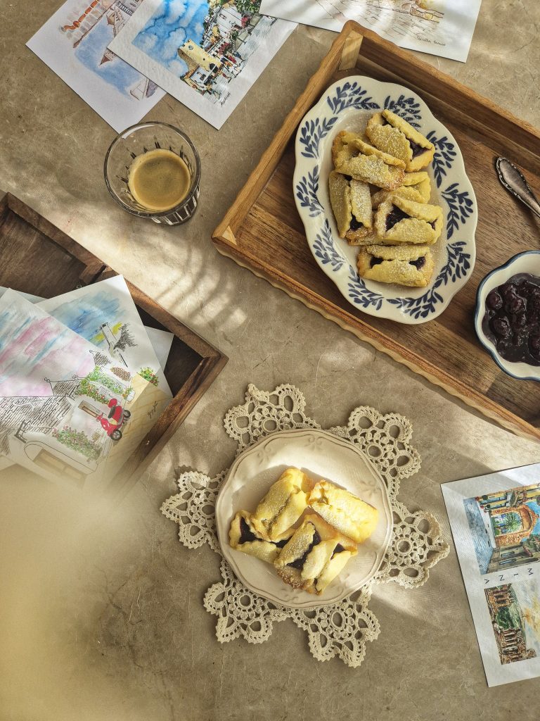 De fiecare data cand ma intorc din Italia, inevitabil mi se face dor de ea si atunci ma apuc sa pregatesc ceva care sa ma duca acolo…pe aripile gustului :). Am incercat de aceasta data biscotti pizzicati cu gem. Sunt niste biscuiti foarte buni si foarte fragezi.