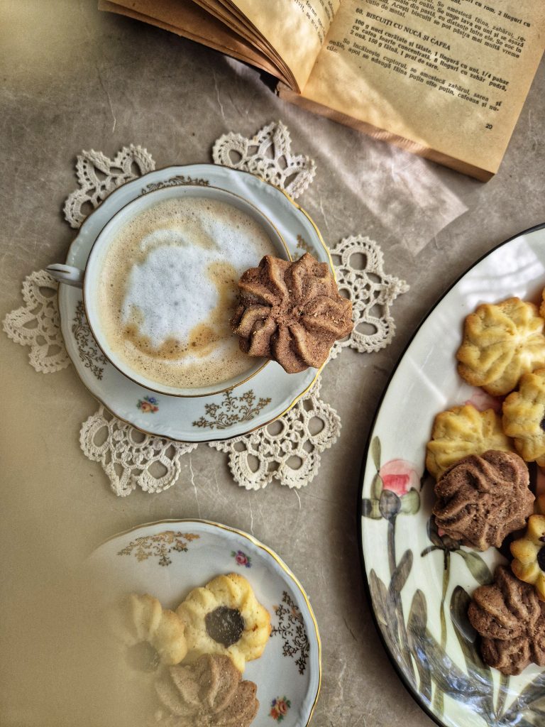 Am ramas in urma cu postarile, desi de prajiturit, s-a tot prajiturit. Uneori am uitat sa le fac poze, alteori s-au mancat si nu am mai avut ce poza :))). In fine, m-am organizat mai bine si am zis sa va las o reteta simpla de biscuiti spritati care vor fi prietenii vostri pentru cateva zile bune, uitand totodata de grija desertului pentru pachetel.