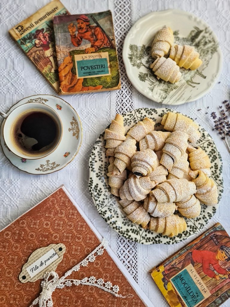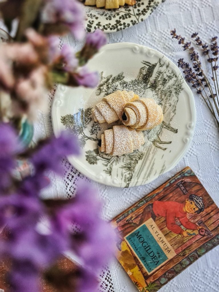 Unul dintre deserturile pe care cred ca toti l-au incercat macar o data sunt aceste cornulete cu magiun de prune sau rahat. Mama le pregatea destul de des, mai ales in perioada de iarna cand avea osanza. Ieseau atat de fragede si bune, incat uneori nici nu mai asteptam sa le pudreze cu zahar.
